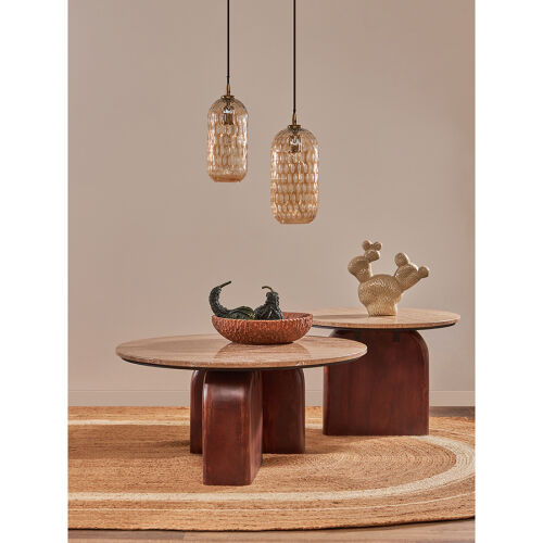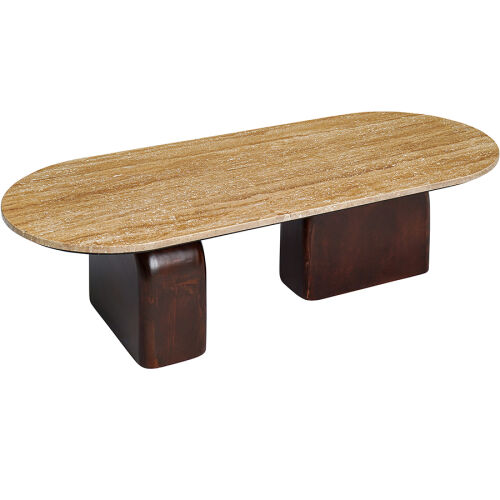 Столешница из травертина и основание из дерева создают прекрасный